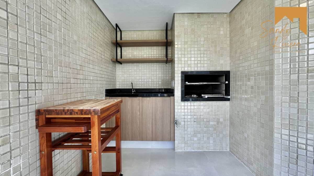 Varanda gourmet com churrasqueira e vista incrível para o mar