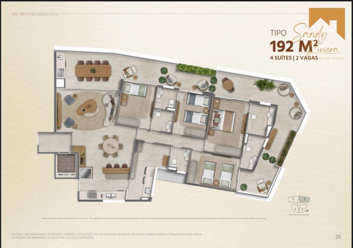 Apartamentos Tipo: 160 m² e 192 m² | 3 ou 4 suítes